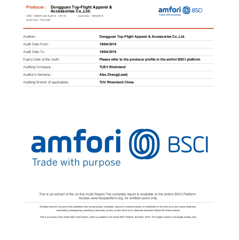 DONGGUAN TOP-FLIGHT APPAREL& ACCESSORIES CO., LTD. Copyright 2014 Visits: